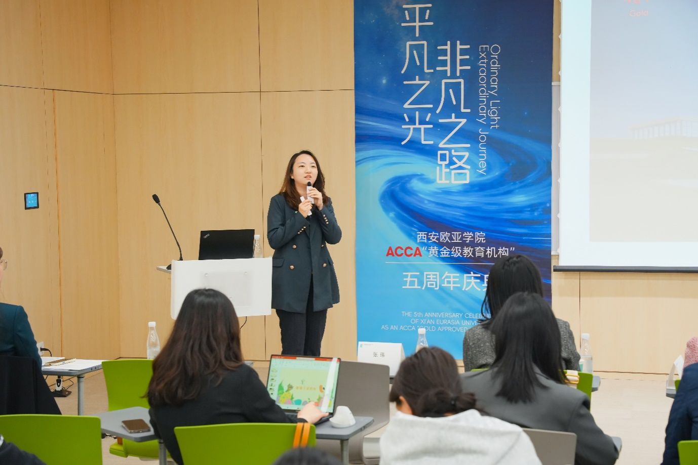会计金融学院院长助理张玮副教授以《平凡之光,非凡之路——ACCA财会国际化人才培养模式探索》为题,详细梳理了项目五年发展的“欧亚路径”:从模块化课程体系搭建到“双师型”师资团队建设,从校企协同育人到毕业生高质量就业,全面展现了“欧亚样本”的可操作性与实效性,为同类院校提供了清晰的参考蓝图。