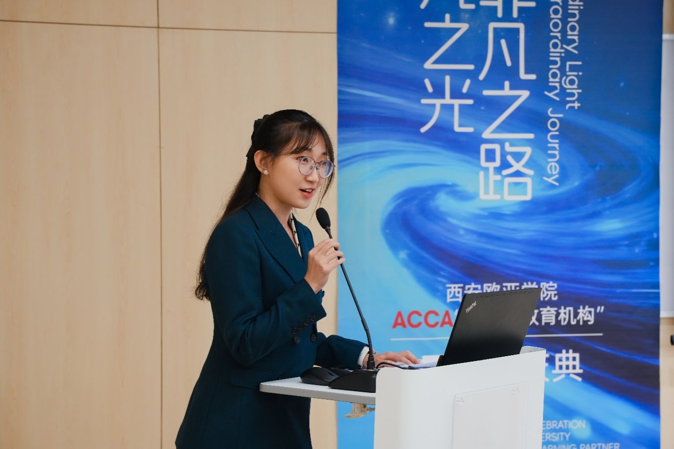 庆典伊始,会计金融学院谢涛院长与ACCA教育关系发展经理刘芳老师先后致辞。谢涛院长在欢迎辞中回顾了ACCA项目自2009年创办以来从起步到领跑的升级历程,特别强调在学校三十校庆的重要节点,ACCA五连冠的成绩是全体欧亚人共同的骄傲。将以此为契机,对学子提出更高标准的培养要求,让每一束‘平凡之光’都能在国际化舞台上绽放异彩。