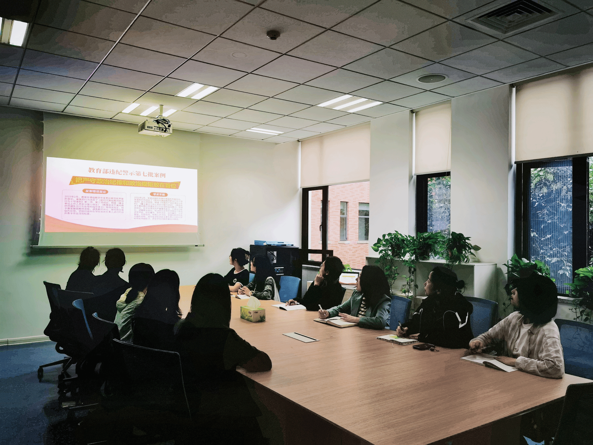 良好师风不仅来自正向激励,也源于反面警示。为强化教师廉洁自律意识,中心持续开展《警钟长鸣》行动,将警示教育融入常态化制度建设之中。在本年活动月中,教师们集中学习了教育部公开曝光的违反教师职业行为十项准则典型案例第七批以及其他违纪违规案例。学习既包括行为事实的梳理,也包含问题根源的剖析,更注重警示启示的讨论,让教师深刻认识到不良行为的严重后果,从思想上警觉、在行动上自律。同时,中心将警示教育与月度生活会相结合,引导教师开展自我剖析和自我检视,查摆自身在职业操守、课堂规范、学术诚信等方面的潜在风险点,真正做到知敬畏、存戒惧、守底线,自觉用制度和纪律约束自己的一言一行。