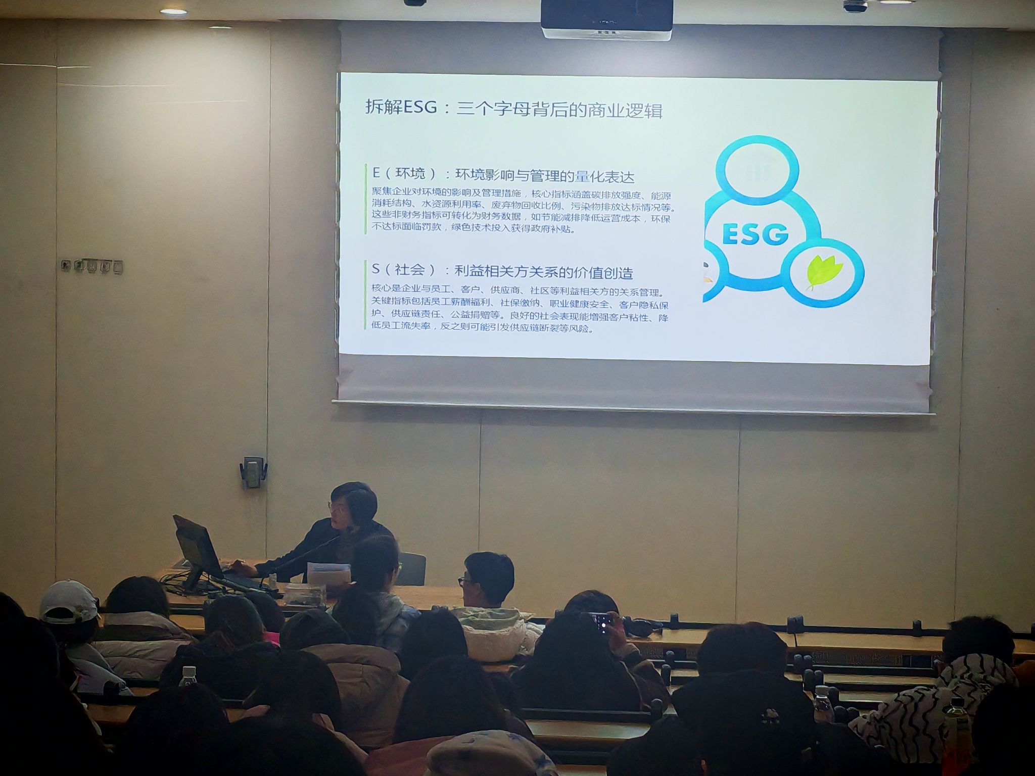 讲座中,任总特别融入课程思政元素,通过企业践行绿色生产、保障员工权益、完善公司治理的正面案例,以及部分企业因环境违规、社会责任缺失导致经营危机的反面教材,引导学生树立“可持续发展视角下的财务观”,深刻认识会计人员在环境保护、社会责任履行、公司治理优化中的重要使命,强化学生的职业担当与社会责任感。