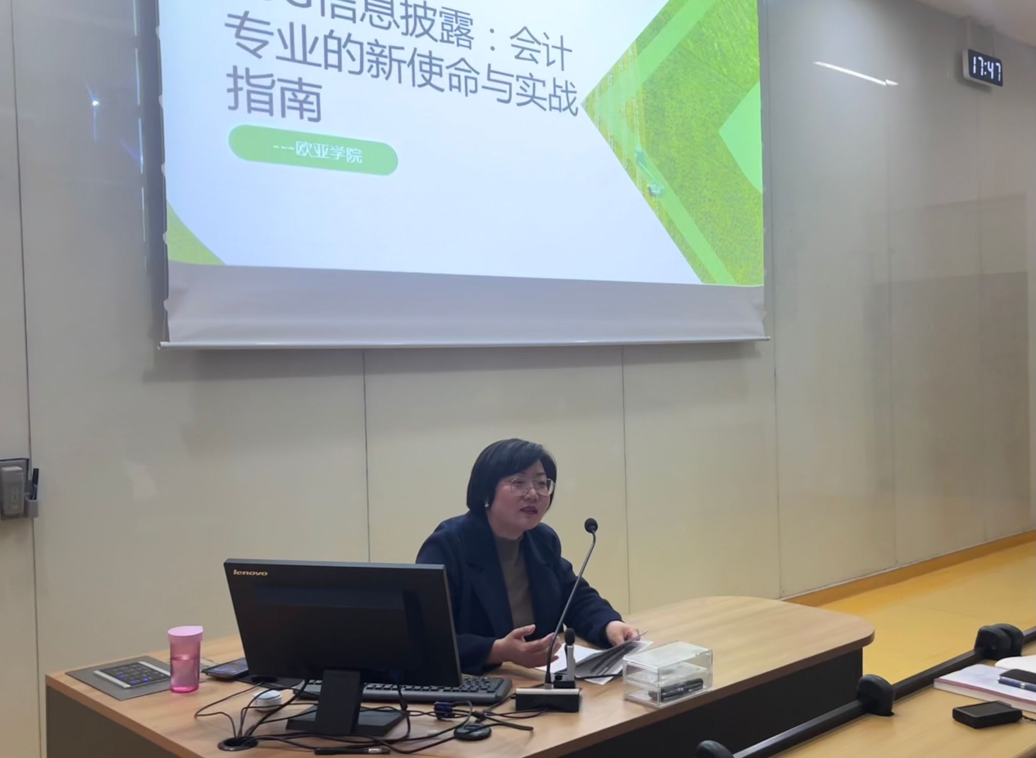 在会计处理与审计实务环节,任总依托丰富的国企财务管理经验,将案例式教学贯穿始终。她结合电力、金融、制造等行业真实案例,深入剖析了ESG相关交易的会计核算准则应用,包括环保设备折旧、政府环保补贴、公益捐赠等业务的账务处理方法,并针对隐性成本计量、多目标资产成本分摊等实务难点,提供了可落地的解决思路。同时,她以化工企业 ESG审计实战案例为切入点,详细拆解了ESG审计的目标、原则、流程与重点领域,让学生直观感受审计过程中的风险识别、数据核验与问题整改要点,为ACCA专业《财务报告分析》课程提供了鲜活的拓展素材,帮助学生理解ESG信息披露与财务报表披露的内在关联,实现“财务+ESG”的知识融合。