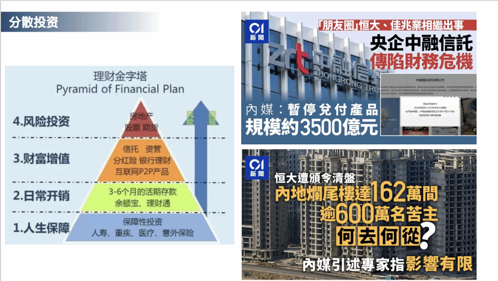 Fiona女士以“鸡蛋不能放在同一个篮子,更不能放在同一个架子上”开篇,直击当下大众投资痛点。当前不少投资者遵循传统理财金字塔配置保险、信托、房产、股票等资产,却面临固收暴雷、房产波动、信托延迟兑付等问题,未能达到分散风险的效果,其根源在于资产虽分散在不同“篮子”,却仍置于同一市场“架子”之上,一旦“架子”出现波动,原本看似分散的资产,仍可能同时承压。投资者需要重新审视既有的理财框架。