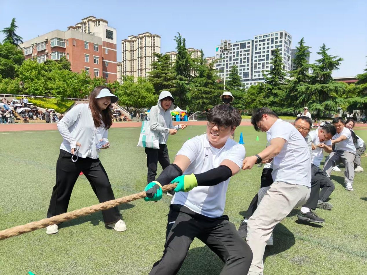 最激动人心的当属拔河比赛。随着裁判一声哨响,赛场瞬间被点燃。参赛教师们紧握绳索、重心下沉、咬紧牙关,拼尽全力向后发力。大家心往一处想、劲往一处使,在一次次拉扯中坚持到底、毫不松懈。场下观众呐喊助威、掌声不断,加油声、欢呼声此起彼伏,将整个运动会的氛围推向高潮。这一刻,胜负已不再重要,大家感受到的是集体的温暖、团结的力量和拼搏的快乐。